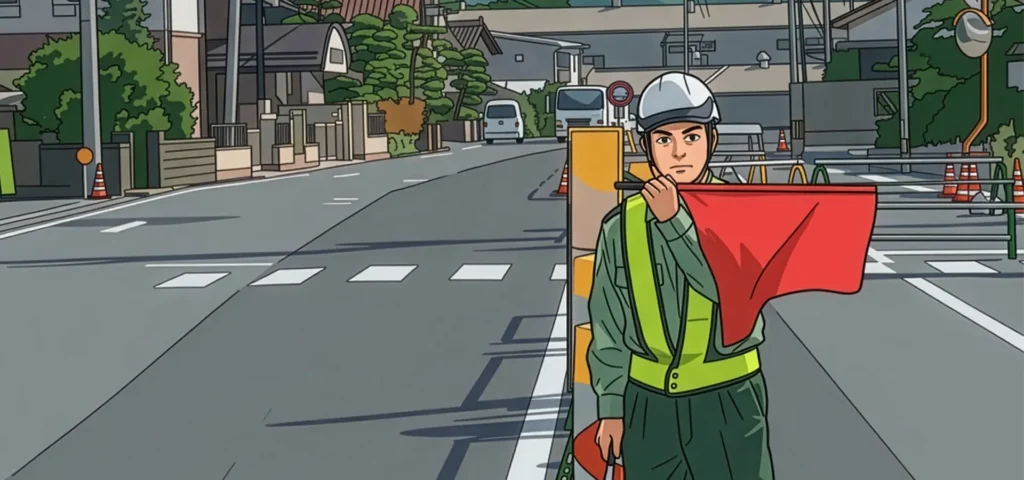 工事現場や道路工事などで歩行者や車両の安全を確保する警備を行います。